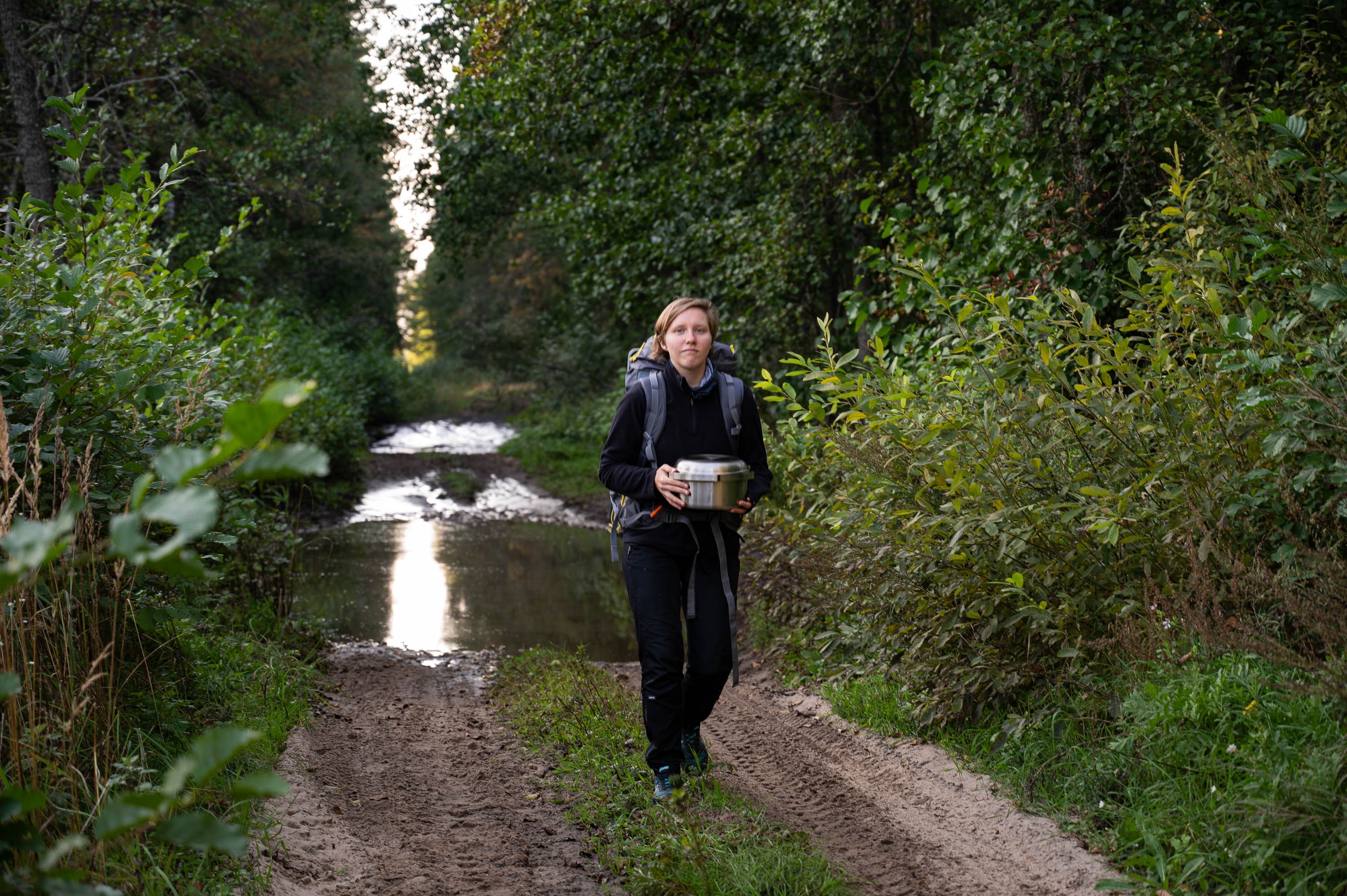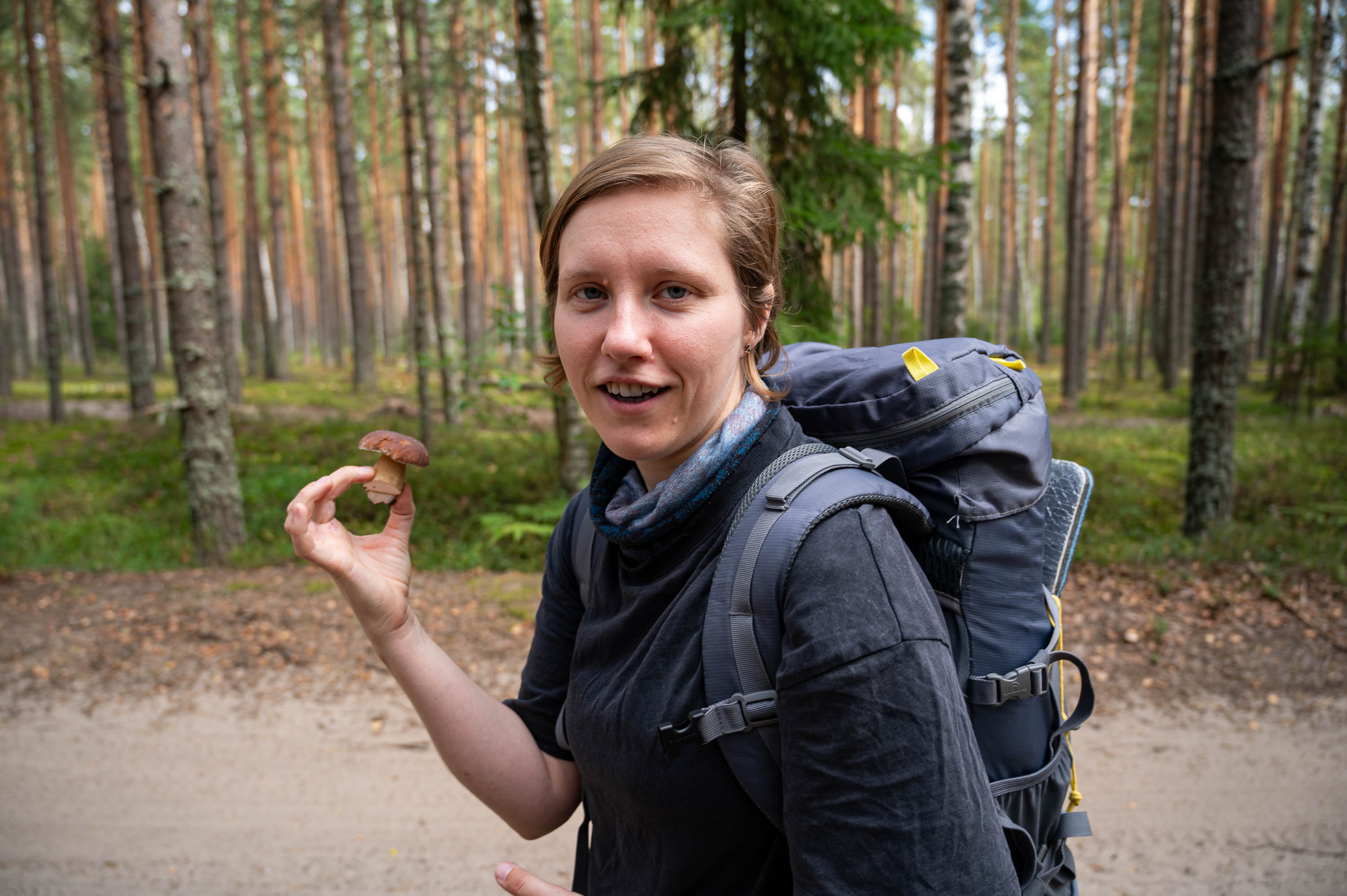 Утром Печенька сходила до машины, чтобы убедиться, что там лежит телефон, заодно оставила там одну пятюшку воды и мусор. Походили до озера, которое то ли не было, то ли не туда пришли, то ли затопило и туда в целом не пройти, я не знаю, просто шёл, куда вели. По пути впервые познакомился с лосиными мухами, они летают, ползают и цепляются, как клещи, ползают неприятно, любят садиться на затылок в волоса. В целом не кусали ни разу, поэтмоу я решительно определил не обращать внимания на них в волосах, ибо оттудова их тяжело вынимать, а с кожи норм, можно и снять. Я один был с палочками, поэтому я чаще забивал на них. Палочки, кстати, были кстати, оч понравилось с ними даже по равнине, где-то скользко было, где-то отгибал ветки, где-то рельеф небольшой, с рюкзаком в целом ходить можно прямее с ними.